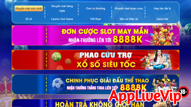 - Khuyến mãi VIP: Trang cá cược này xây dựng hệ thống thưởng dành riêng cho tài khoản VIP, hội viên gắn bó, Khách hàng khi tham gia sẽ được nhận vô số ưu đãi độc quyền như quà tặng tháng, nạp tiền nhận 50%, CSKH riêng, mốc hoàn cả cao lên tới 2%.